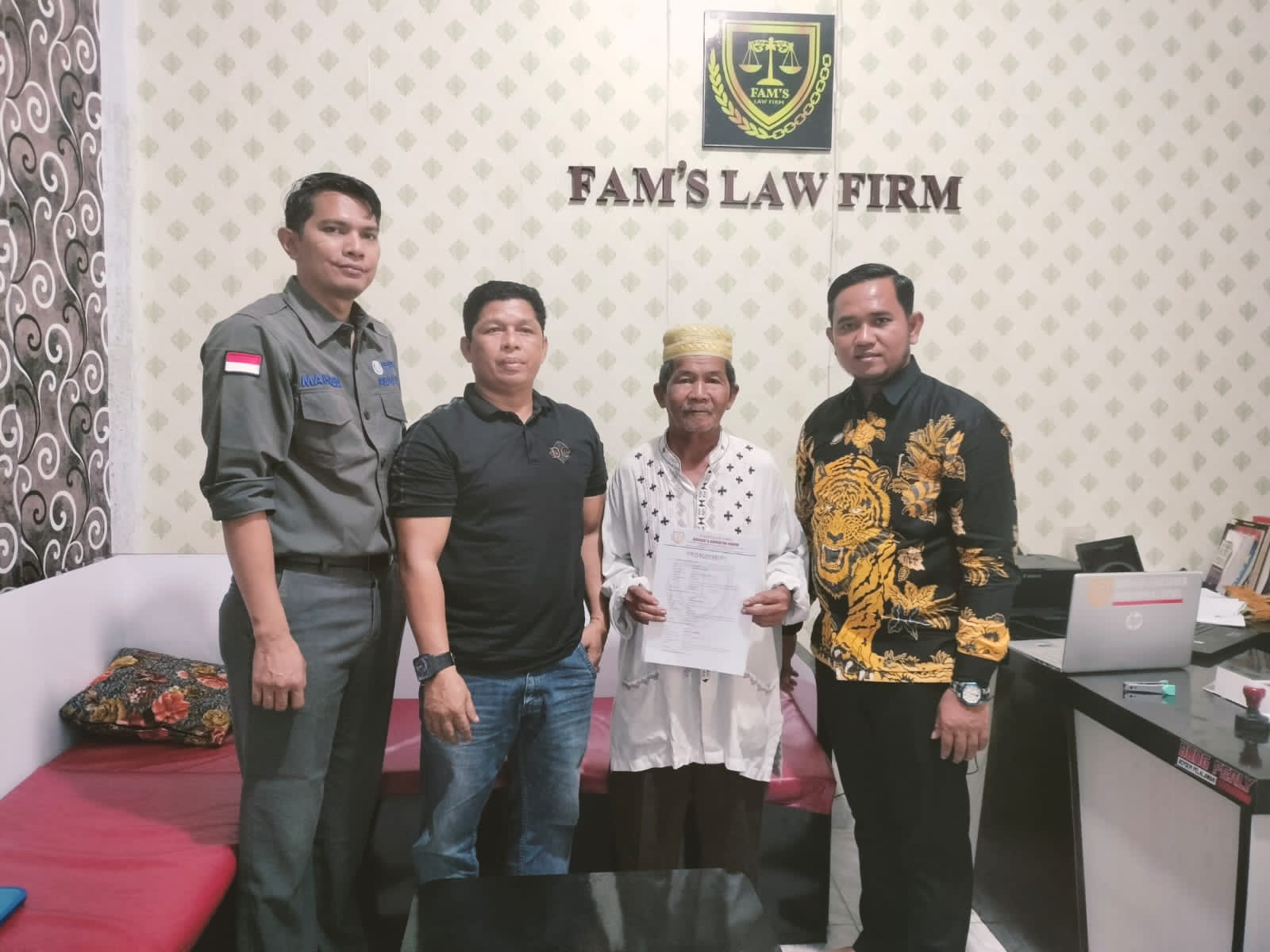 PANGKALAN KERINCI- GEMURUHNEWS.COM, Kantor Hukum Fams Law Firm secara resmi memberikan pendampingan hukum kepada Kakek Jumat (80) dan kawan-kawan, Rabu (28/2/2024).